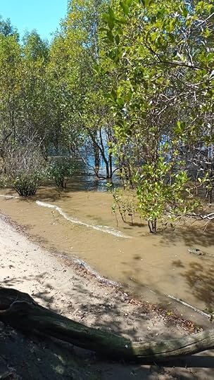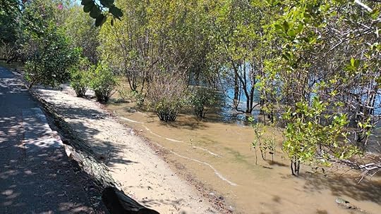 Mangroves play a vital ecological role: they help to stabilize shorelines and reduce the devastating impact of natural disasters such as tsunamis and hurricanes. They also serve as breeding and nursing grounds for marine fish and shellfish species. I find them particularly beautiful at the late afternoon high tide: dark mysterious mud, the bright gleam of water through the trees, the deep rich salty odour of the swamp.