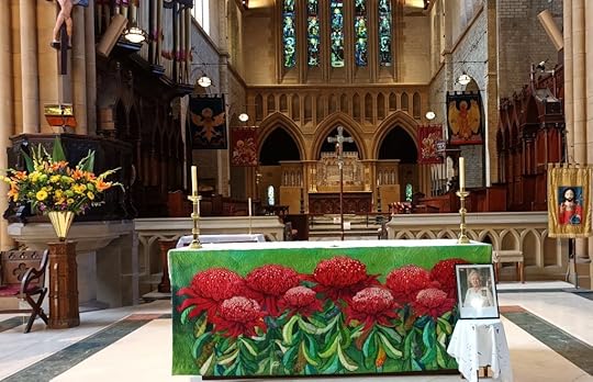 Altar frontal in Christ Church Cathedral, Newcastle NSW. The embroidered flowers are the Waratah the national flower of New South Wales.