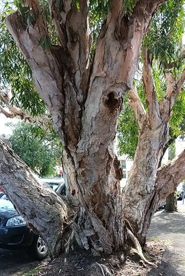 The next day we travelled on to Leura in the Blue Mountains. Our journey took us past sublime distant views of Lake Illawarra, climbing up between massive subtropical rainforest trees, close beside a mighty rock face to our right, past giant tree ferns, creepers, vines, tangled roots. We passed a forest of white ghost gums, their branches reaching out in different directions, as if will-o-the-wisps were dancing between them.
