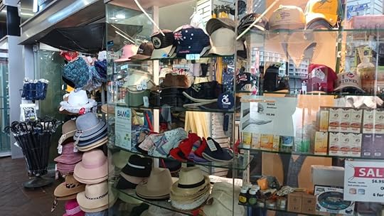 Approaching Sydney Opera House across the harbour from Manly – arriving at Circular Quay and browsing the tourist shops.I had a special reason for wanting to inspect the tourist shops as I have written a short story in which my main character visits Sydney and he arrives at Circular Quay. I make reference to a certain item of quintessentially Aussie headwear he buys (overseas tourists think it absolutely sums up Australia – Australians themselves might disagree).I’m glad to report the shops are still selling them!