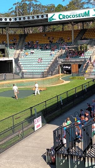 Finally, the crocodiles rarely fail to respond in the Crocoseum, as I have found on previous visits to Australia Zoo. This time however, one of them really wasn’t bothered about taking his snack from the keeper at the side of the pool, although he was tempted several times. Instead, he cruised over to the high platform and circled around waiting for his treat to be dangled to him from above, which he obviously considered to be much more fun.