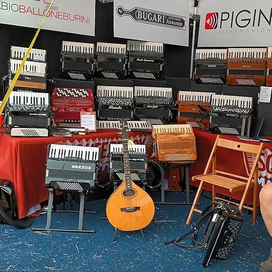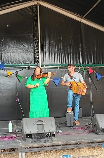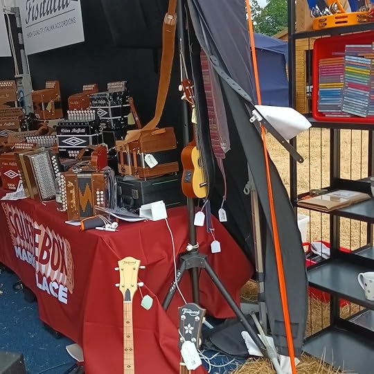 Musical Instrument Stall at the Warwick Folk Festival 2022We loved a wonderful folk duo who came onstage after the choir. Bryony Griffith is a fiddler and singer, and her husband and partner Will Hampson is a melodeon player and dancer. Bryony Griffith and Will Hampson are both gifted interpreters of English folk music, and were special guests on the Jester Stage. I plan to feature them in my book.