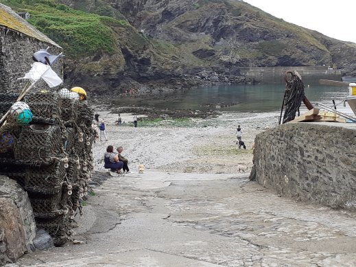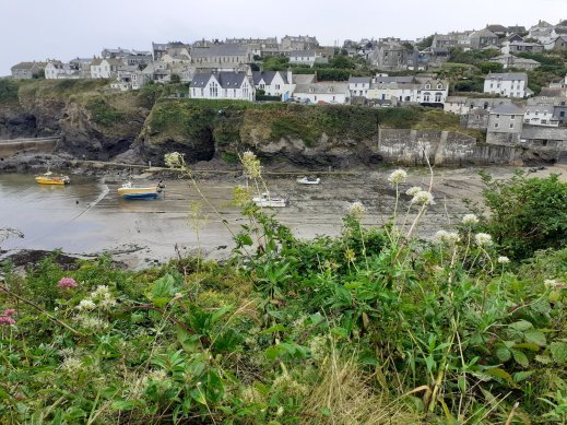 Port Isaac, a working fishing village on the north Cornwall coast, is an enchanting place for a walk: and not only because it is beloved by all those who follow ‘Doc Martin’! Spectacular sea views fill us with wonder; narrow. steep winding streets, and a jumble of quirky little cottages embrace the harbour, and the entire community lies, encircled by the headlands: magical, idyllic and compelling.