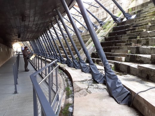 Now, the recovered part of the timber hull is held in a state of perfect equilibrium, so the timbers no longer need to be sprayed with water or viewed through portholes. Instead, thanks to a fine balance of atmosphere and temperature and a series of air-lock doors, we may gaze at the recovered hull in its entirety, at every deck level.