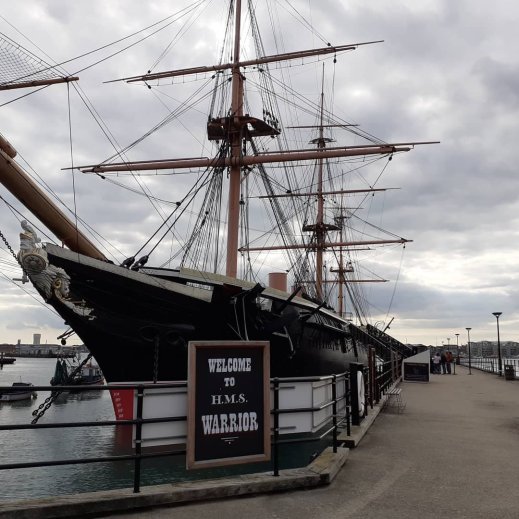 Underneath the bow of HMS VictoryHMS Warrior, a magnificent Victorian armoured ship in immaculate condition ‘never fired a gun in anger’. Built in 1860 it ran on half sail half steam.
