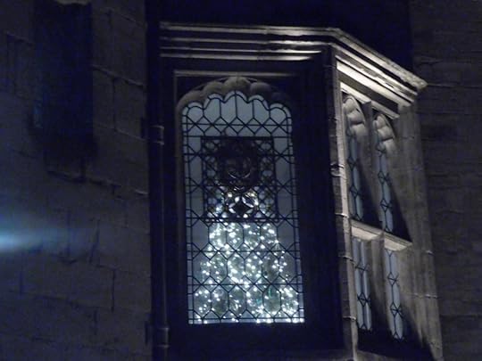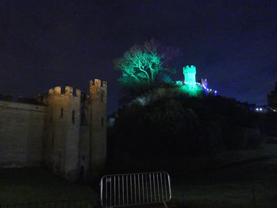 Powerful beams intermittently bathed Guy’s Tower and the ramparts in mauve and green and blue, and the stalls of the Christmas Market were decked out in myriad lights.