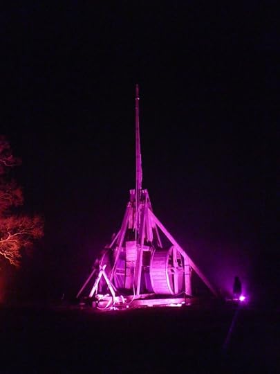The giant trebuchet was irradiated with purple light, and the boathouse seemed like a gingerbread house from a child’s storybook.