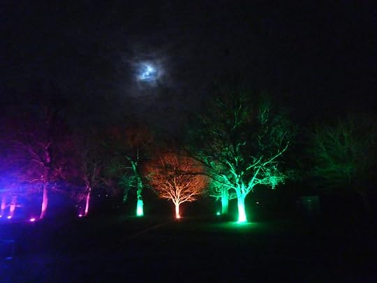 All the while the full moon perfectly harmonised with the man-made light displays. The backdrop of trees glittered with rich colour, floodlit to set out in sharp relief the ones in front.