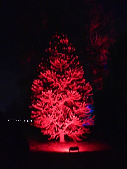 Every detail of the monkey puzzle tree glowed with crimson light.
