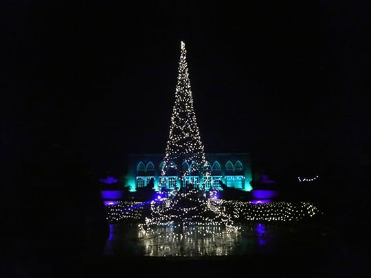 We emerged into the peacock garden with is glowing Christmas tree and every feature of the garden delineated in lights.