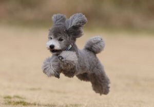 A miniature grey poodleWe called him “Kimmings”. He was officially a silver poodle, but when very young he was black. I have a vivid memory of sitting behind the front passenger seat craning my neck in excitement to look at my mother in front, with this tiny bundle of black wool on her lap – our new puppy. I was fascinated by him and couldn’t take my eyes off him.