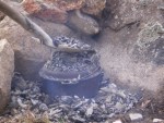 Here is the process of making damper, demonstrated by a honorary ‘bushman’ / exponent of bush-craft (alias a friend of my sister’s then living in a caravan in Stanthorpe, Queensland), a process which my daughter Abigail photographed while we were in Australia in 2007: