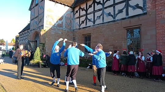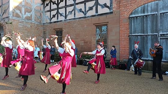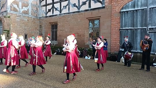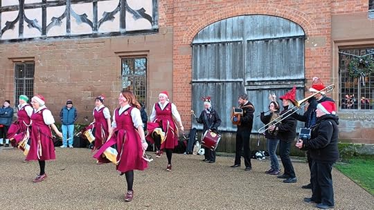 I love Morris dancers, and at Kenilworth Castle on Boxing Day morning, all those who had braved the icy winds and crisp chill of the atmosphere were treated to several dances by the Coventry Morris and the Chinewrde Morris Dancers of Kenilworth. Male and female dancers entertained us while we were fortified with hot chocolate and mince pies from the Stables tea room.