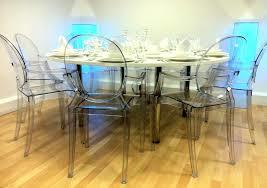 Ghost chairs may be stacked. Those made of clear acrylic are barely seen which makes it possible to keep extra seating on hand without a feeling of clutter. This is especially important in boardrooms, offices, funeral homes for visitations, and other spots where one cannot exactly estimate the number of seats that might be needed.