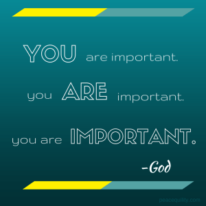 I believe people are acting in ways which show they don’t feel important to others. My realization of all this came because I don’t feel important to the people in my life. And the truth is, I’m not important to certain people and they have made this known. The last seven years has been a lonely path and I haven’t had the eyes to see how much God loves me and how important I am to Him. By partnering with the enemy on our identity the individuals which make up our country will not thrive. So what can you do?