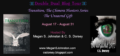 Thank you for stopping by. Please join in, follow the tour, and enter to win...Transition, The Chimera Hunters (5 e-Copies & 1 Sign Copy) The Unsacred Gift (2 Kindle Copies & 1 Sign Copy).