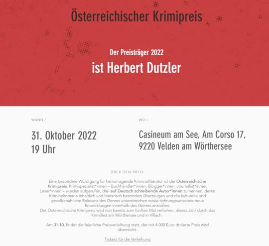 Die Lesung zum Interview gibt es samt der Verleihung des Krimipreises am 31. Oktober in Velden: