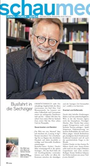 Barbara Kaudelka ist nicht nur Ressortleiterin des Schau-Magazins sondern auch Schauspielerin – sie wird in der zweiten Gasperlmaier-Verfilmung die Rolle der Frau Chefinspektorin Dr. Kohlross übernehmen und hat diesen Beitrag über „Die Welt war eine Murmel“ gestaltet.