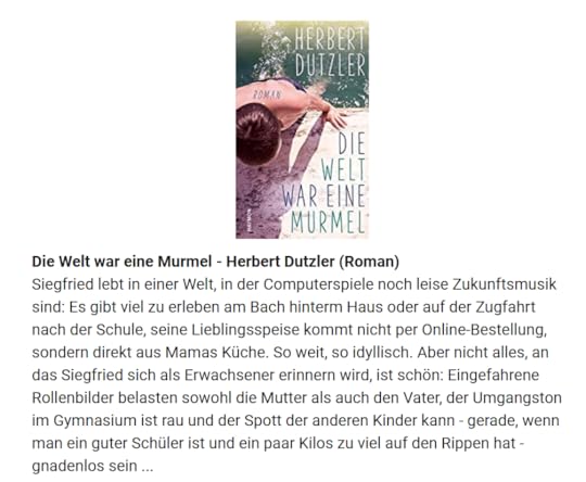 Eine fantastische Rezension von „Die Welt war eine Murmel“ bei „KEK in Wien“ (steht für Kunst-Essen-Kino). Herzlichen Dank an Alexandra Wögerbauer-Flicker, auch für die wunderbare Collage mit dem Buch!