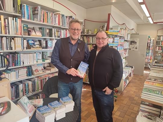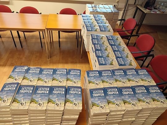 So viele meiner Bücher habe ich auch noch nie zuvor aufgestapelt gesehen. Ich habe gestern 500 Exemplare von „Letzter Tropfen“ signiert, die über Thalia in den Handel gehen. Damit alles gut geht, habe ich mir zuvor (natürlich bei Thalia) einen Tintenroller und ein paar Kuli-Minen besorgt – trotzdem gab es ab ca. Exemplar 350 ein paar Krämpfe in der Hand.