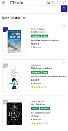 … bis wir in den Buchhandlungen sind. Und bei Thalia schon auf Platz 2 der Bestsellerliste! Das fängt ja schon einmal vielversprechend an!