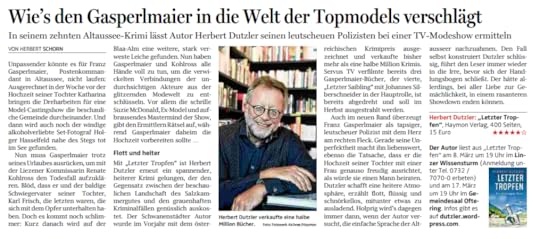 Durchaus freundliche Rezension aus den Oberösterreichischen Nachrichten – mit einem Wermutstropfen. Der Autor behauptet, die Altausseer verwendeten „einfache Sprache“ und ich hätte versucht, diese nachzuahmen. Das ist natürlich, mit Verlaub, blühender Unsinn.