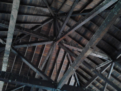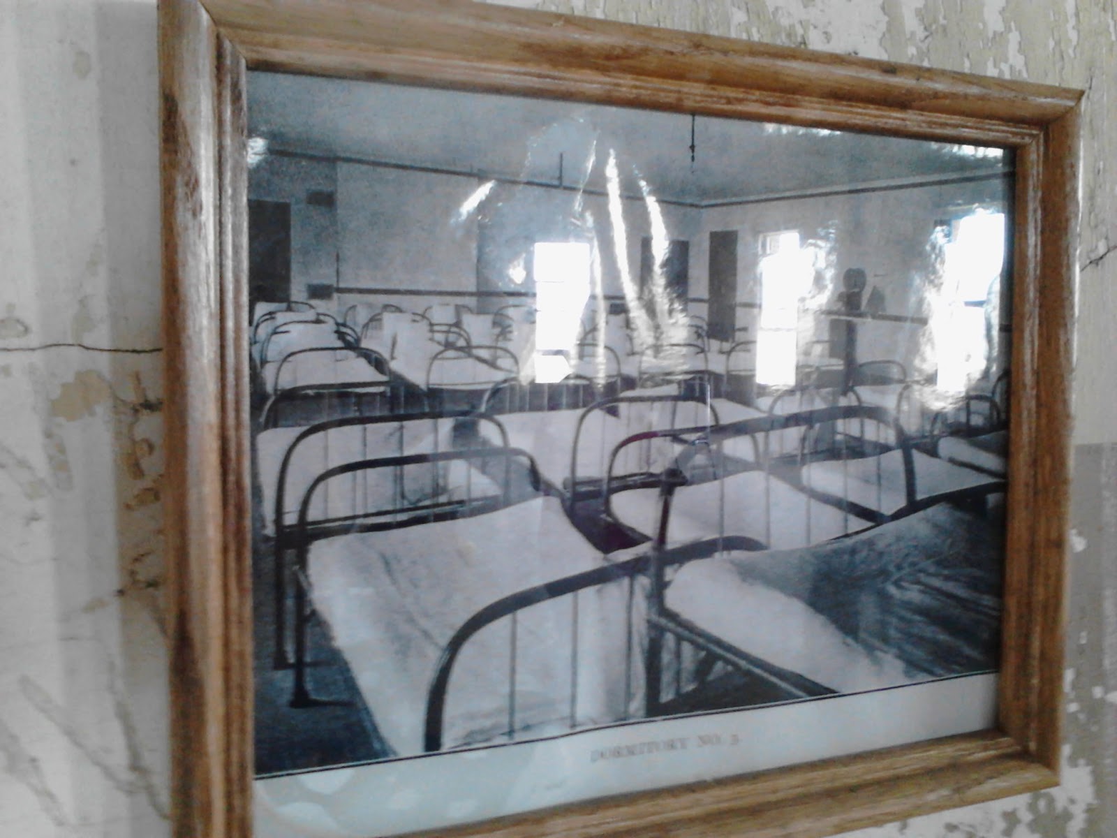 Upstairs boys dormitoryWe were taken upstairs to the boys dormitory, where 50 beds once nestled close together. The ceiling is really quite extraordinary, with criss-crossed wooden beams. Boys had carved their names up there in the rafters. I wondered if the gorgeous ceiling must have been covered with a dropped ceiling back in the day, to make the room easier to heat or cool. As we left the room, a vintage photograph did indeed make it look like the ceiling was dropped and mundane.