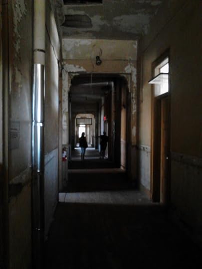 Much better now the room is empty, but still can't see the stepsI'll be the first to admit my cell cam is pretty crappy, but it was odd it just couldn't show me the steps. Now, the only reason I knew about Preston Castle was that I attended the book launch of Angelica Jackson, whose book Crow's Rest is in part set there. (I'm halfway through the book and totally, enthusiastically recommend it!) The night of our visit, I continued reading and came across mention of the main character's camera's failure to work properly at the castle. I got a little frisson of shock reading that.