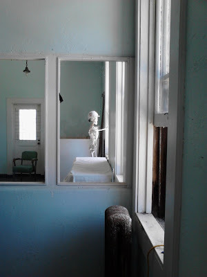 Another skeleton, in construction hat. Not sure why?In the room where the skeleton pensively looks out the window, surgeries were performed on the floor. You've had enough time to think about the machine--post your guess in the comments?