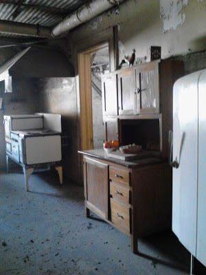 The kitchenWe entered the kitchen, in which I immediately noticed the beautiful Hoosier cupboard. Apparently I am not a "sensitive" soul, because I was standing only feet away from where a violent murder occurred, and yet I didn't feel any echoes from that sad event.We were told that the young cook came upon two boys in the kitchen, scolded them and told them to leave. As she went to climb the stairs up to her apartments, they pulled her back down and bludgeoned her to death. Or, well, the story goes that one of them did. He stood trial and benefited from a hung jury, in part because the other boy informant was known to be a big liar. The acquitted boy went on to later stand trial for two other murders.