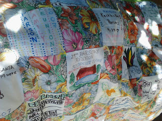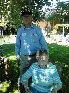 Pictured are Gary Parsons, our leader and historian, and Harriet Parsons, who sews a quilt to memorialize each reunion. We each decorate a square with fabric pens and she builds a beautiful quilt around them. It's a joy to go through each year's quilt and see the squares of years gone by.