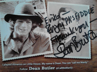 My online searching brought me to a website where I could buy a CD with Pa's fiddle music. I ordered it right away and couldn't wait to listen. I emailed back and forth with the contact at this site and was bowled over when I opened the package to find this autographed photo inside. It turns out the person who is very humbly answering questions is Dean Butler himself! I was emailing with Manly!