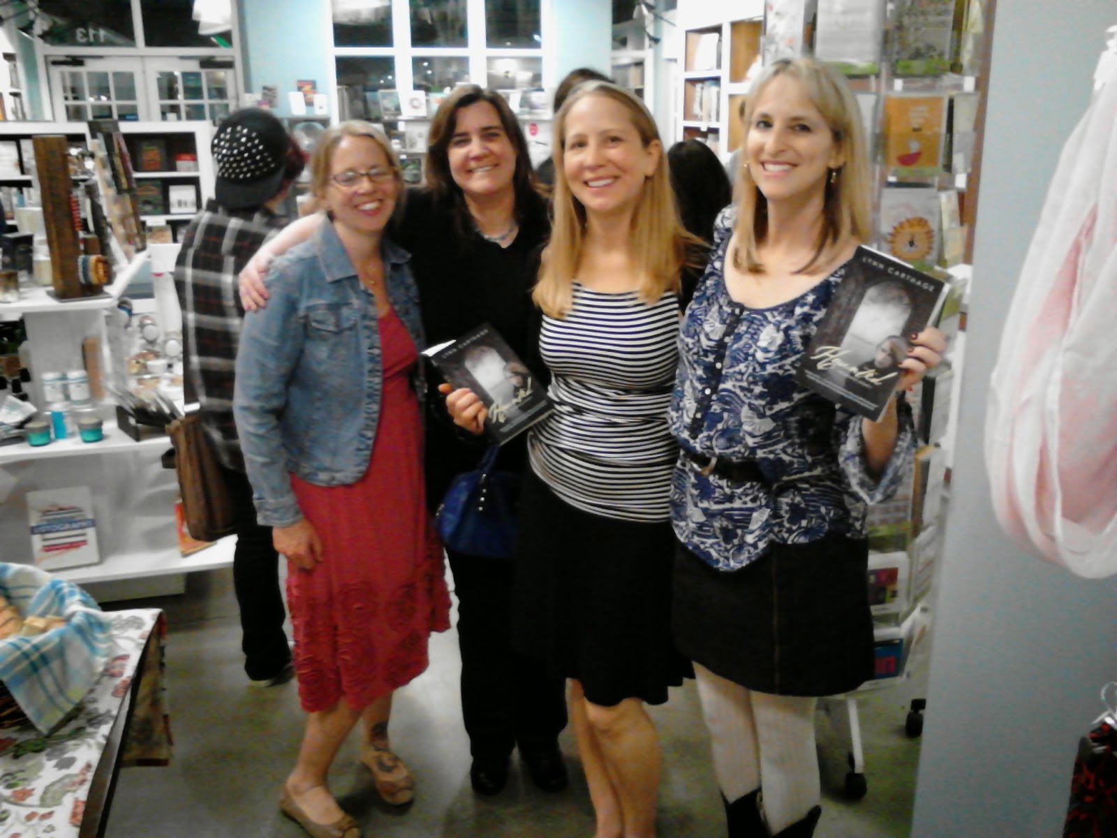 Members of local Historical Novels Society help Lynn Carthage launch her novel. From left,Erin McCabe (I Shall Be Near to You), Susan Spann (Blade of the Samurai),