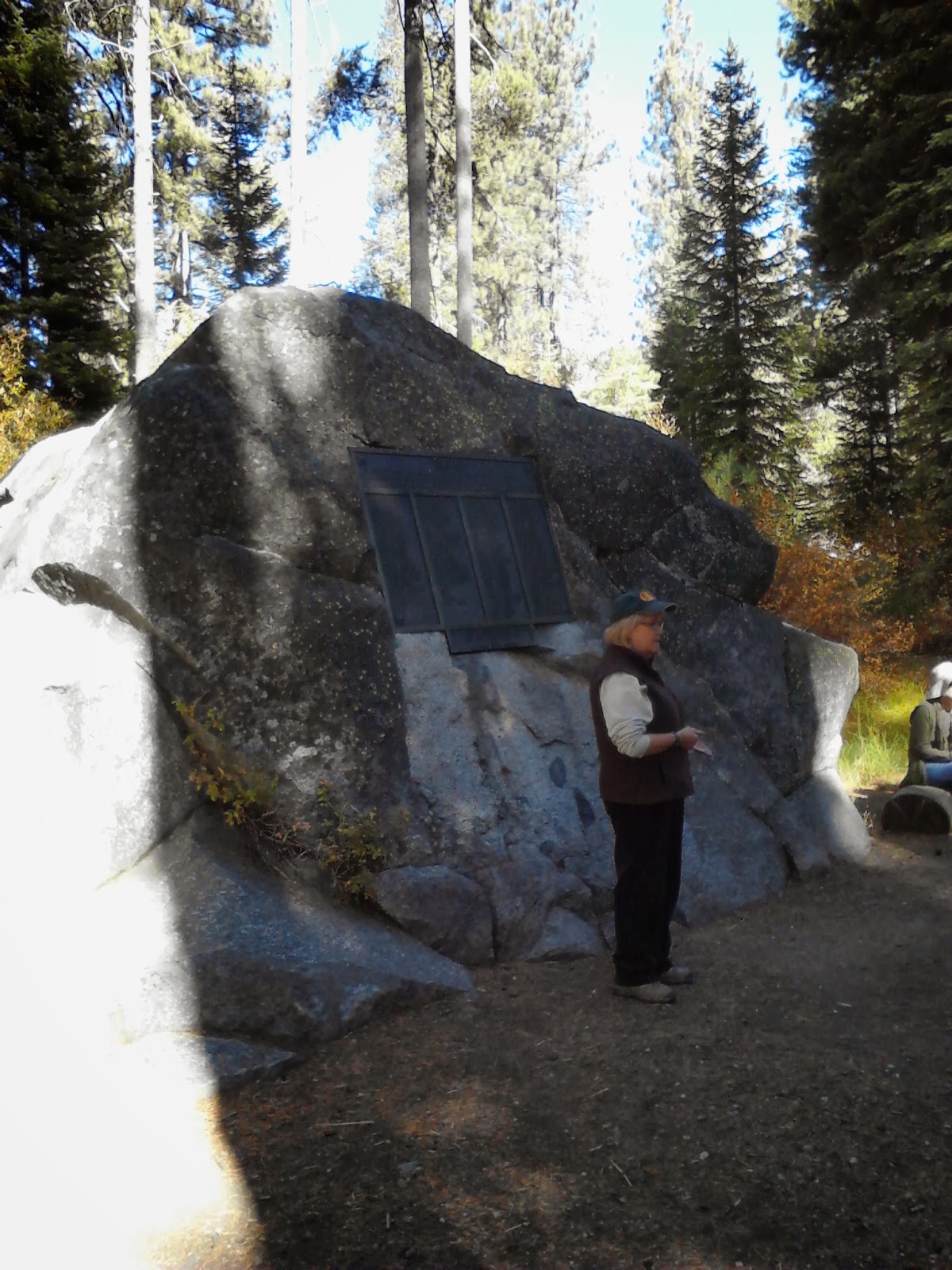 Last weekend, I returned to the annual Donner Party Hike which I last did many years ago, when we still lived in Oakland. This hike (which has now evolved into many different hike selections over two days, depending on your preferred level of strenuousness) follows part of the emigrants’ trail. I remember last time spending all day hiking to sites where the guides pointed out scars on tree trunks, from where the wagons scraped through, and where we saw the infamous Roller Pass.