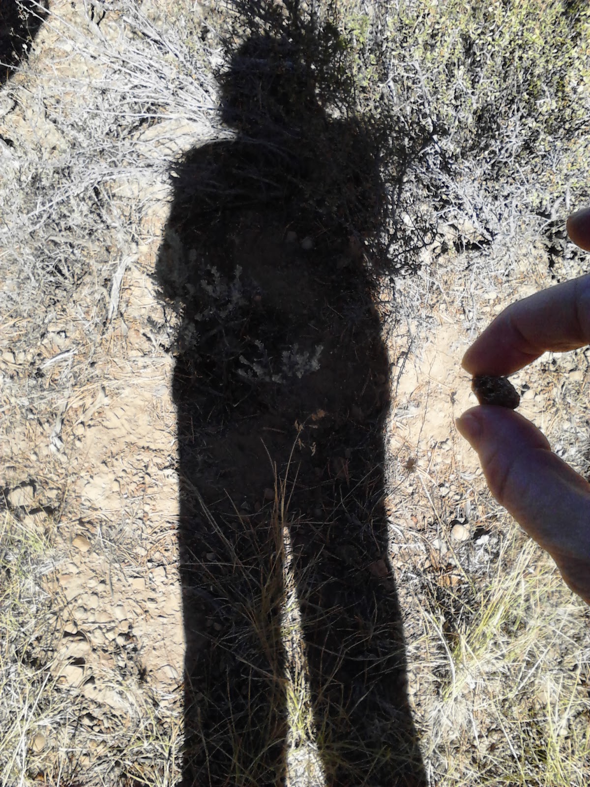 My shadow: holding a bone fragment