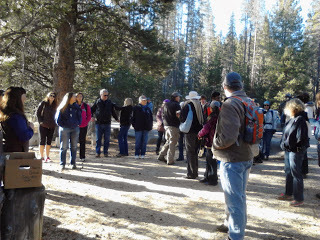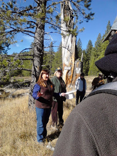 Our group: there were maybe 25 of usThis year I chose to do the hike (maybe more like a tour--not much walking involved) that focused on Alder Creek, the separate encampment area seven miles from Donner Lake, where the two Donner families and a few others set up their fragile domiciles to wait out the winter of 1846-47.