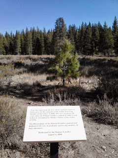 This young tree was planted by Donner descendantsThis story pulls at my gut, has me obsessively reading three books at a time on the topic, carrying on a wonderful email correspondence with a highly-regarded Donner Party historian, and even giving my poor community college students writing assignments like, “Write a letter to Lansford Hastings, pretending you’re a survivor.”Not too long ago, I told my husband a particularly disturbing anecdote from the Donner Party annals—not about cannibalism; oddly enough, I don’t find that aspect that compelling or interesting—and he said, “That’s why you can’t sleep at night. You read this stuff right before you go to bed.” He was, well, suggesting I stop doing so. It was a gentle suggestion on his part, so I didn't say what I thought, which was, “If you want me to stop reading about the Donner Party, then you married the wrong woman!”