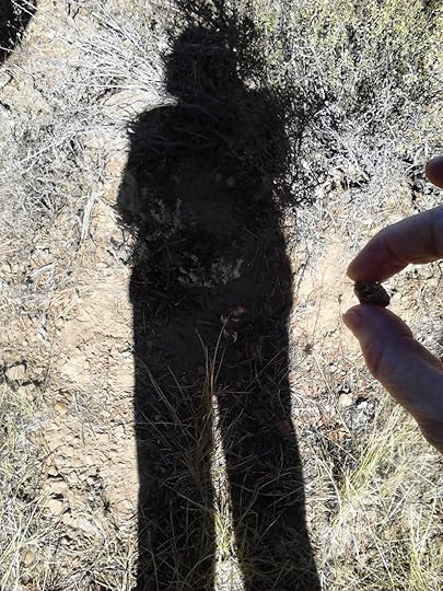 My shadow: holding a bone fragmentThere was a little Tupperware that went around our group, holding bone fragments and even a piece of clear bottle glass. So remarkable to hold these things!