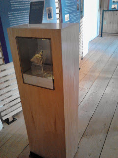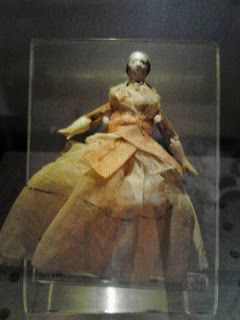 I wish I had been able to obtain better images--you can google around and find excellent professional photographs. One last thought: the Sutter's Fort doll is certainly treated like she's the real deal. She's in an enclosed, temperature-controlled exhibit case (see below). The doll itself is surprisingly small, perhaps 3-4 inches.