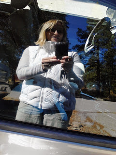 Gratuitous selfie in Alder Creek parking lotA full seven miles away, on the shores of what is now Donner Lake, three other shelters served the non-Donner members. One was a fairly decent log cabin used by Moses Schallenberger two winters before (like the Donners, he wintered at the lake, and his memoirs make good reading). Patrick Breen and his family were presumably the first to arrive at the lake, and first come-first served. On the site of the Breen cabin now stands the Pioneer Monument, a fairly ghastly depiction of man, woman and child groping their way to California.