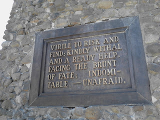 Here's a close-up of the plaque on the monument. I cannot believe it mentions virility, since it was the men who made the disastrous decision to take the fatal Hasting's Cut-off, while poor Tamsen Donner clearly advocated staying on the proven trail. A fellow traveller's journal reports her sour disposition as the men overruled her.