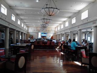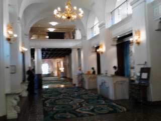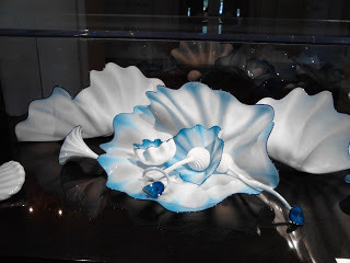 Chihuly glasswork in the lobby caseIn the lobby (besides an incredible Chihuly display), a collection of photos showcased the hotel's history and its astounding multimillion-dollar renovation. It had spent 18 years empty; there's something so evocative to me about formerly grand places in decay (viz., the Titanic).The Chihuly Museum is here in town (the town being St. Petersburg, Florida). I really wanted to go. I love Chihuly, who I first encountered upon entering the San Jose Museum of Art, where he has two enormous hanging glass pieces in the front lobby...which made me think in an earthquake, I'd know exactly where not to stand. And then in the Bellagio in Las Vegas, I marveled at the magnificent Fiori di Como ceiling near the registration desks. Finally, Dale Chihuly gets sort of bandied about in a novel I'd just read called Where'd You Go Bernadette, which I loved beyond speaking, so I was really excited to see the evidence of his handiwork here and there in the hotel. Unfortunately, I wasn't able to swing visiting the museum although I walked right past it. Nor was I able to see the Dali Museum, whose architecture is said to be one of the top 10 buildings you have to see before you die. Well....now I don't have to die, right?