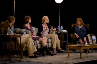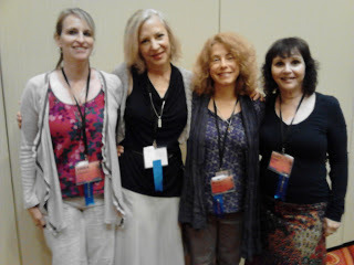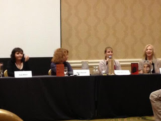 Since we all live in different areas of the country, we decided to meet at the conference to plan our panel the day before the presentation.We'd previously agreed on the tenor of the discussion and even come up with a few questions to talk about, but we wanted to chat and plan further. Kathleen was a champ: her flight had been delayed, so she showed up to our get-together fresh off the hotel shuttle!