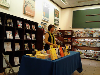 Just before the reading. Look what a nice display the bookstore made behind her!