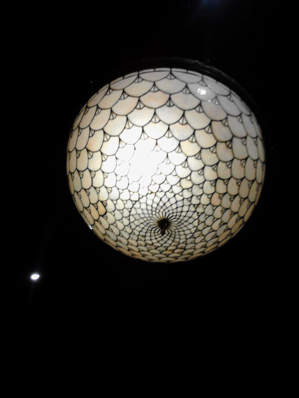 Although it's hard to tell in the photo, the lamp's glass looks like mother of pearl, and indeed a plaque at the museum notes that it was created at the Kokomo Opalesescent Glass Company in Indiana in the early 1900s. I love finding Oakland reminders, and this was a lovely one.. .. .