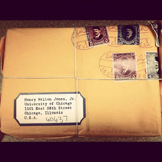 I'm coming to this late and some of you may have already seen this...Someone sent a package to the University of Chicago addressed to Henry Walton Jones, Jr. The label is typed and of a vintage style (rectangular, with trimmed edges, limned in black), and the stamps and postmarks are from Egypt. The handwritten zip code doesn't appear to be vintage handwriting (and zip codes wouldn't have existed at the time this package would have been sent to Indy--1917 or so)