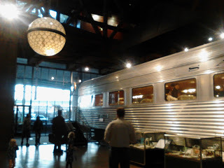 Long before Thomas the Tank Engine entered my life, I experienced an attraction to the railroad. In high school I had a gorgeous Art Deco poster of a Wagons Lit poster on my wall, and I've always thought longingly of what it would be like to travel in the golden days of rail.The Sacramento Railroad Museum shows amazing examples of cars, engines, and even....the element I most remember from my first trip a decade ago....the china and flatware used on various trains. An entire dining car is set for a meal with each seat showcasing the place setting of a different line throughout the U.S.