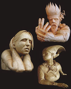 These sculptures visually show what I tried to convey with words in The Witch's Trinity. In fact, had I known of Rocknak's work in 2006, I would have begged and pleaded with my editor to have one of her pieces on the cover --or maybe even this triptych, which to me looks like the priest, Gude and Irmeltrud.