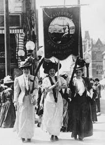 Individuals and groups are coming together to re-enact a suffrage parade that took place in Oakland in 1908-the FIRST suffrage parade in California! Suffrage didn't pass for another three years, in 1911...but women fought hard for decades to get it through.