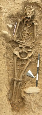 Another nearby corpse was buried with 17 dice. Seventeen is an unlucky number in Italian, and women were prevented from playing dice in medieval times, so it's thought she too may be a victim of a witchcraft accusation.